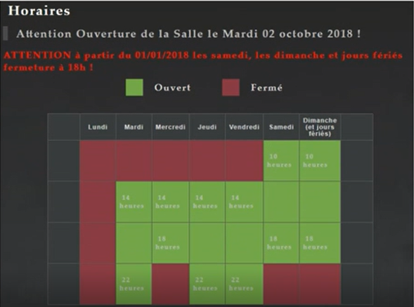 Les horaires de la salle